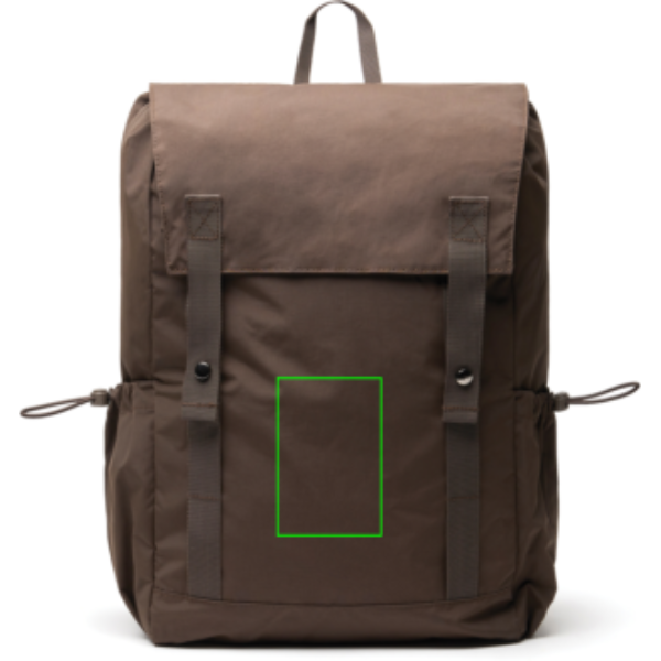 Der KENTO Everyday Backpack transportiert alles, was Sie im Laufe des Tages benötigen – er bietet viel Platz für die wichtigsten Dinge des Alltags und ist ideal für Tagesausflüge & Reisen, da er sich bei Bedarf kompakt zusammenfalten lässt. Er besteht aus RCS-zertifiziert recyceltem Nylon mit einer PU-Beschichtung und ist mit einem RCS-zertifiziert recycelten Polyester-300T-Futter ausgestattet. Er enthält 43% zertifiziert recyceltes Material und bietet somit eine verantwortungsbewusste und nachhaltige Lösung. Die Frontklappe wird mit zwei Gurtbändern und Magnetknöpfen gesichert. Darunter befindet sich eine Fronttasche mit Reißverschluss und ein geräumiges Hauptfach mit beidseitigem Kordelzugverschluss. Im Inneren ist Platz für einen 15,6" Laptop, in der Ihr Gerät geschützt und ordentlich verstaut werden kann. Ein Gurtgriff oben und verstellbare Schultergurte sorgen für bequemen Tragekomfort, während seitliche Flaschenhalter mit Kordelzugverschluss zusätzliche Praktikabilität bieten.